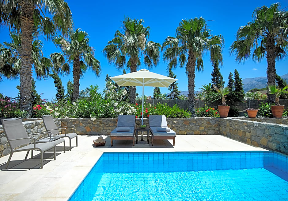 The seafront junior suite features a private pool. Balconies have direct sea views.
